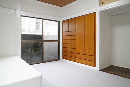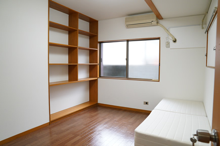 基本設備、ベッド、机、椅子、収納ボックス2個、ごみ箱。その他部屋別にクローゼットほか設備は異なります。 |